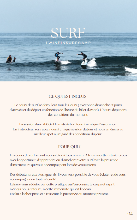 Leçons de Surf : Initiez-vous aux plaisirs du surf ou perfectionnez votre technique avec des cours dispensés par des instructeurs expérimentés.